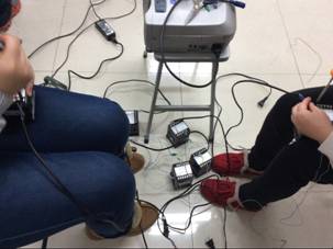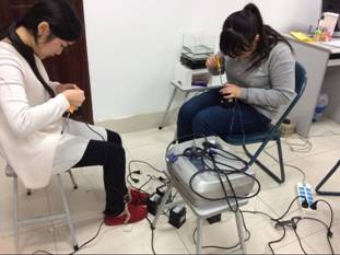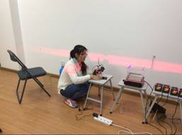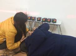 组装好各种设备之后,我们想做第一次实验,但是把插线板的插头插上的一瞬间,我们在的那间教室直接断电了,插头的地方还冒出了火花,我们赶紧把插头拔下来,之后又找了保安叔叔才把电重新通上,检查了一下设备发现有一只温度表后部有焦味,原来是电线露出的金属丝部分比较多,火线零线不小心碰上了,在重新把温度表检查之后,问题就解决了。但是作为当时去插插线板的人,武娜娜同学惊魂未定,提起当时的场景,她的内心几乎是崩溃的。