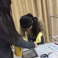 如何得到层结说白了就是怎么在冷水上面加热水,还能让冷热水稳定分层,其实主要就是要解决我们加热水时热水所带的速度,我们需要做的就是缓冲这个速度。傅豪学长建议我们用泡沫塑料板做一个小船,小船底部扎满小孔,让热水满满渗下去,于是我们第一天的任务就是做一只满足条件的小船。做小船容易扎孔难,孔的大小、数量很有讲究,孔扎大了缓冲效果很差,扎小了水又渗不下去,还好我们有容嬷嬷,不对,是武娜娜,终于在她拿着小针兢兢业业扎孔多次之后终于得到了可以得到层结的小船!