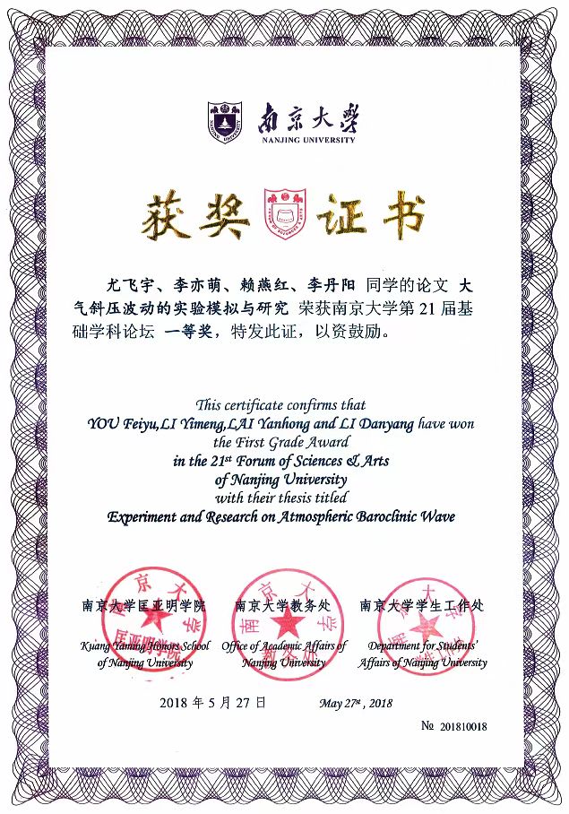 南京大学第二十一届基础学科论坛数理类 一等奖